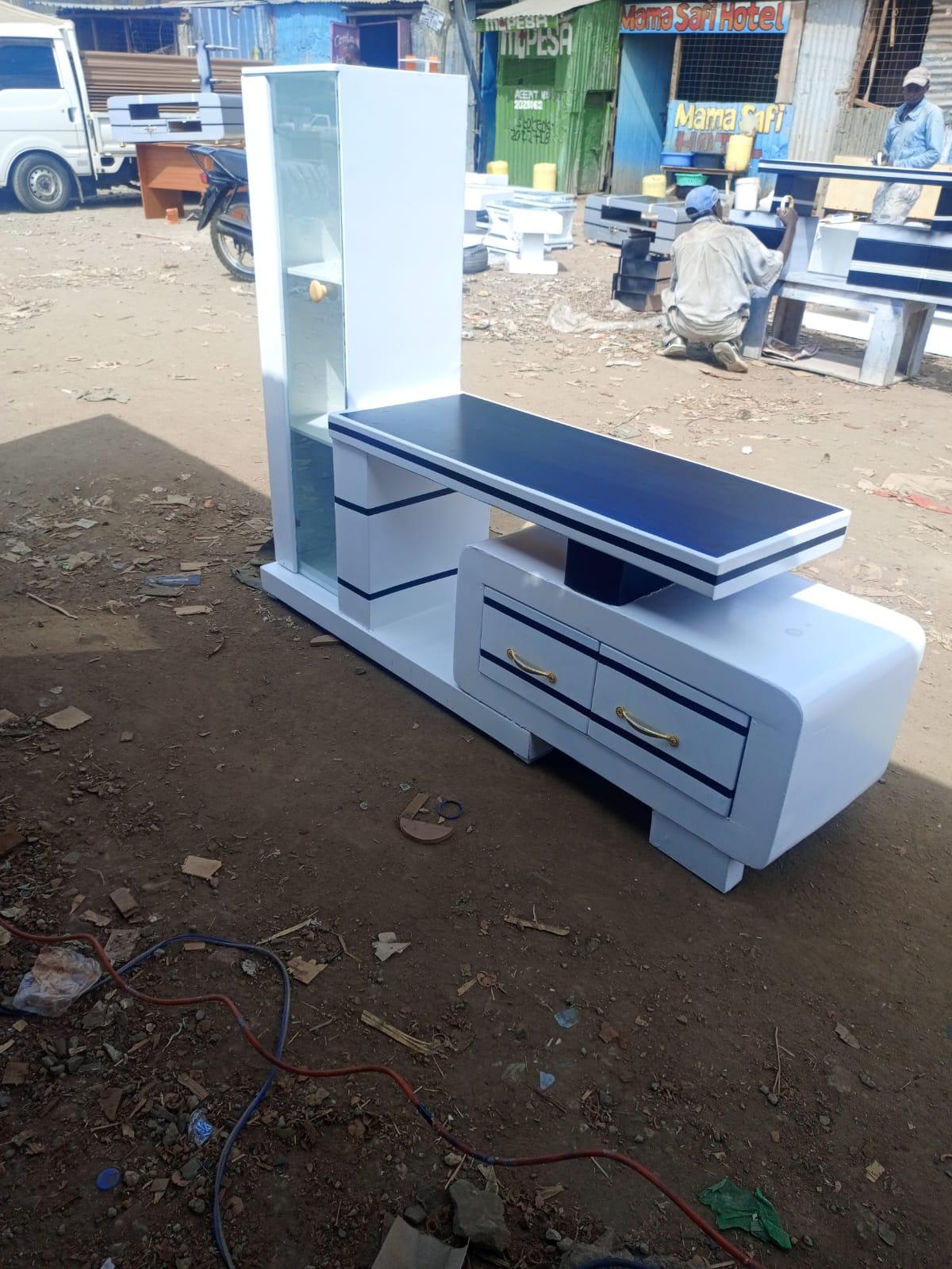 Elevate your living room decor with our high quality big connected tv stand. Has a top ply for holding your tv well in position or your sound bar. Has storage unit for a cabinet for your utensils. Has LED light which lighten it up elevating its stunning appearance to perfection. Has more storage unit enclosed by drawers and comes with a woofer space. Has carpet castors which makes it easily portable without scratching hence no damages caused. We make sure we leave our clients happy and comfortable. For order call us via 0116227813. We sell both in WHOLESALE and RETAIL.